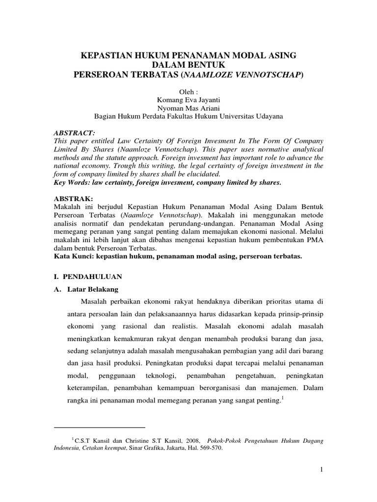 Makalah hukum investasi tentang penanaman modal asing. Tentang penanaman modal asing ,maka dari itu dengan adanya makalah ini kami bertujuan untuk memberikan informasi dan pengetahuan tetang investasi asing kepada masyrakat , manfaatnya kami dapat mengetahui yang terjadi tentang perekonomian indonesia saat ini , Pengertian penanaman modal asing 2. Sedangkan investasi langsung yang dikenal dengan penanaman modal asing (pma) merupakan bentuk investasi dengan jalan membangun, membeli total atau mengakuisisi perusahaan.