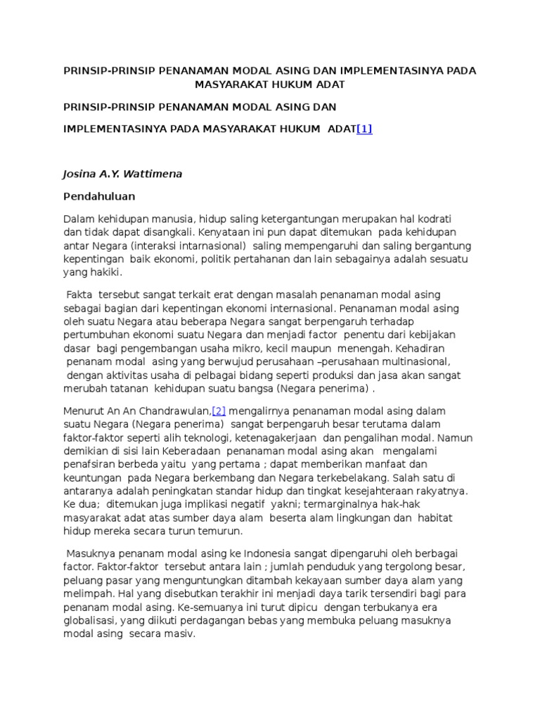 Prinsip penanaman modal asing dan implementasinya terhadap