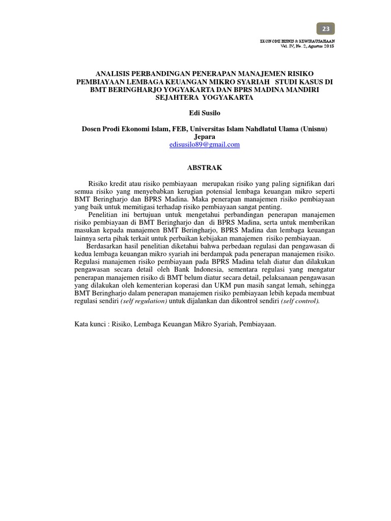 Judul Skripsi Ekonomi Syariah Kuantitatif Pdf Ide Judul