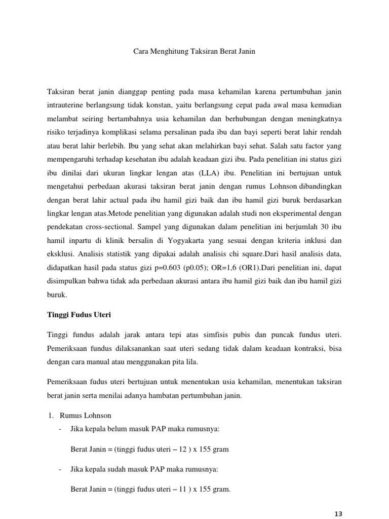 Cara Menghitung Taksiran Berat Janin