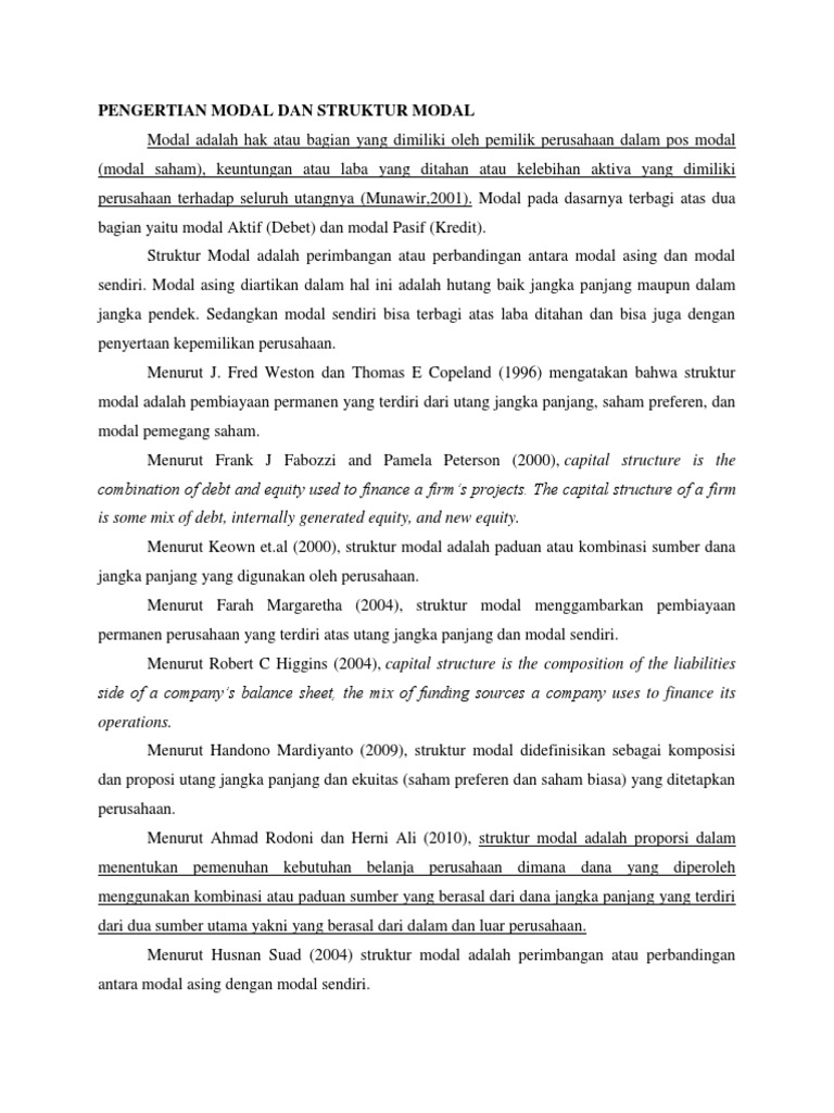 Pengertian Modal Dan Struktur Modal Copy
