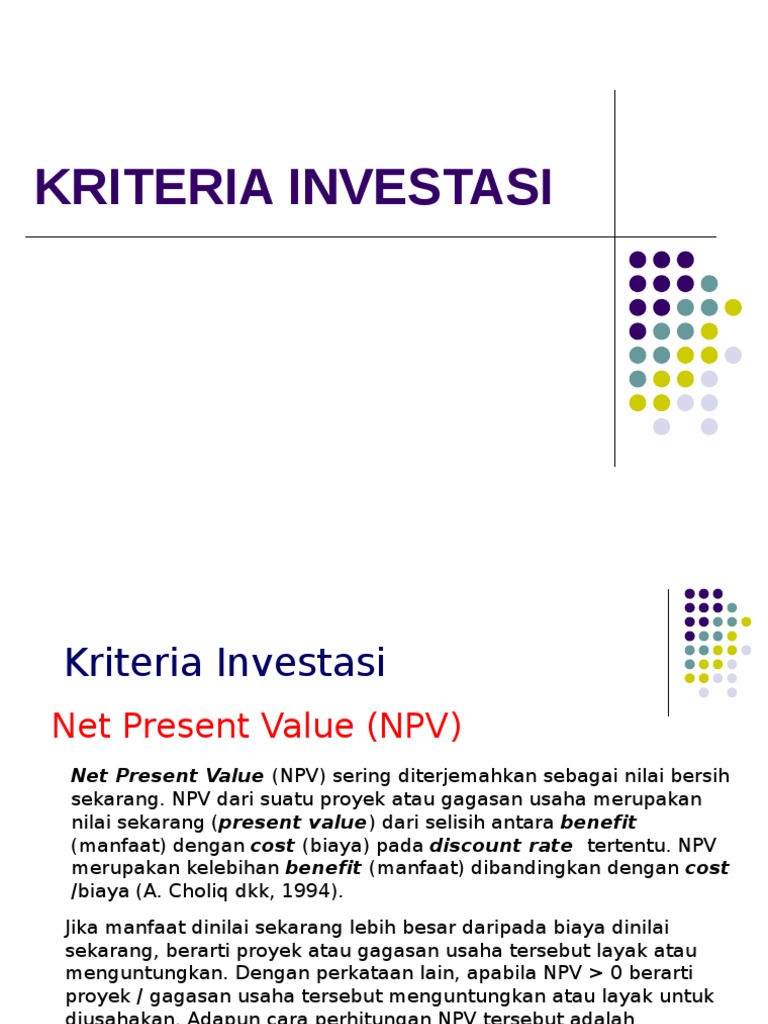 Google scholar provides a simple way to broadly search for scholarly literature. Semua pihak yang tidak bisa disebut satu persatu yang telah memberikan dukungan. Menurut relly dan brown investasi adalah, “investment is the current commitment of dollar for a period of time to derive future payment that will compensate the investor for (1) the time the funds are committed, (2) the expected rate of inflation, (3) the uncertainty of the future payment.”2 sharpe dkk., menjelaskan bahwa investasi dalam arti…
