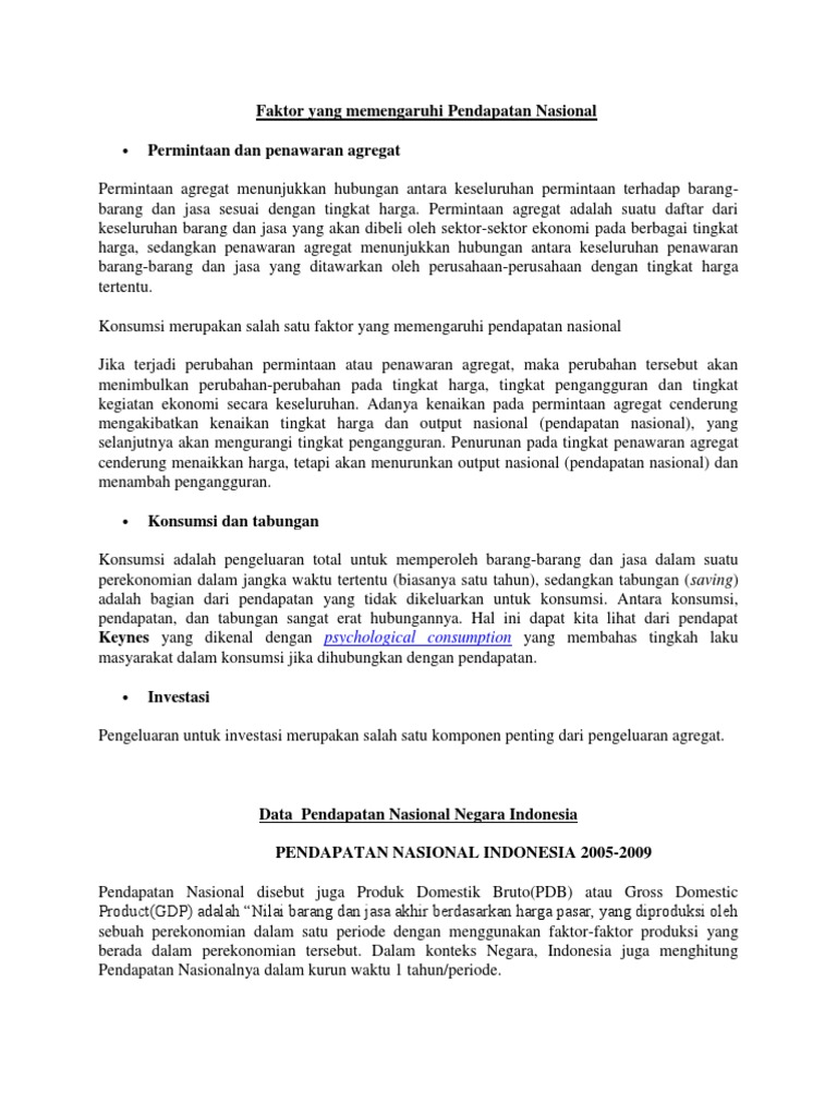 Faktor Yang Memengaruhi Pendapatan Nasional