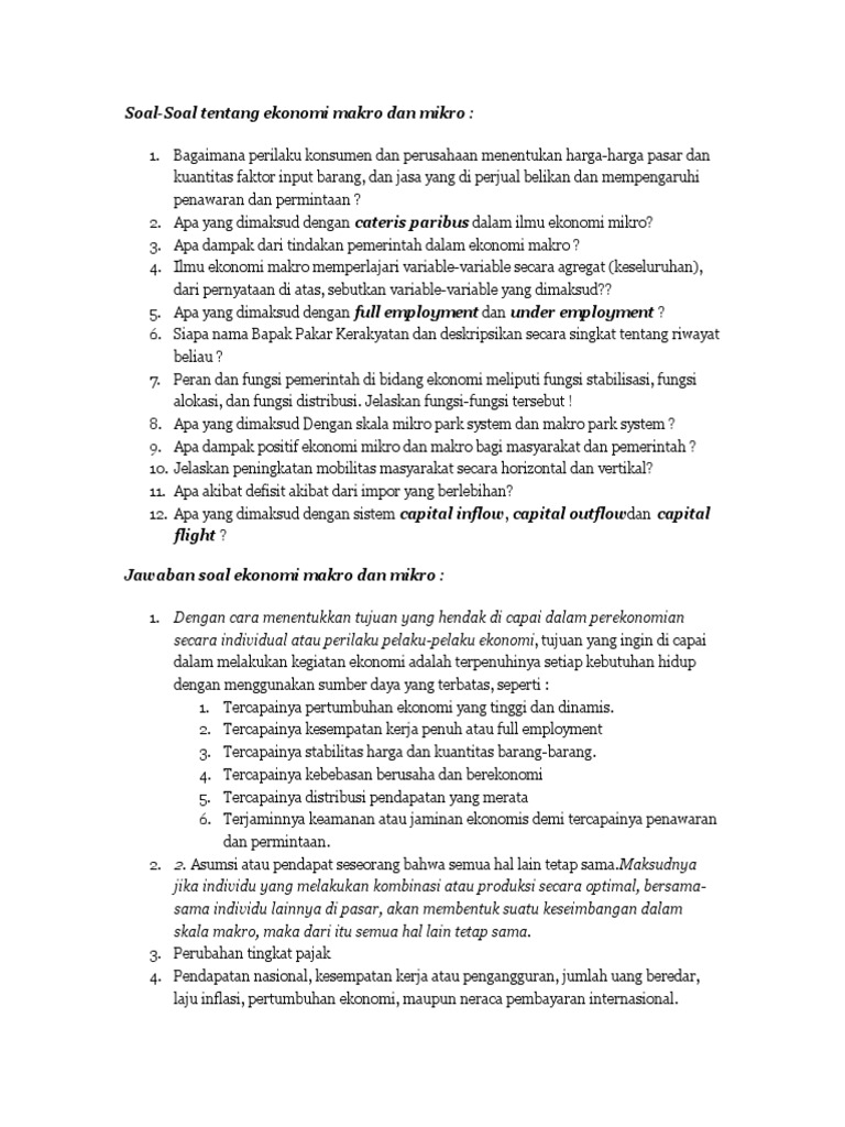 Contoh Soal Ekonomi Makro Dan Jawabannya